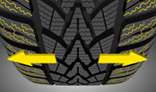 Winter Response 2 - lamele pod uglom od 45 stepeni* Lamele u ramenu pneumatika pod uglom od 45° – Lamele u ramenu raspoređene pod uglom doprinose boljem ujednačavanju centrifugalne sile i time poboljšavaju prianjanje pri skretanju na ledu i snegu.
